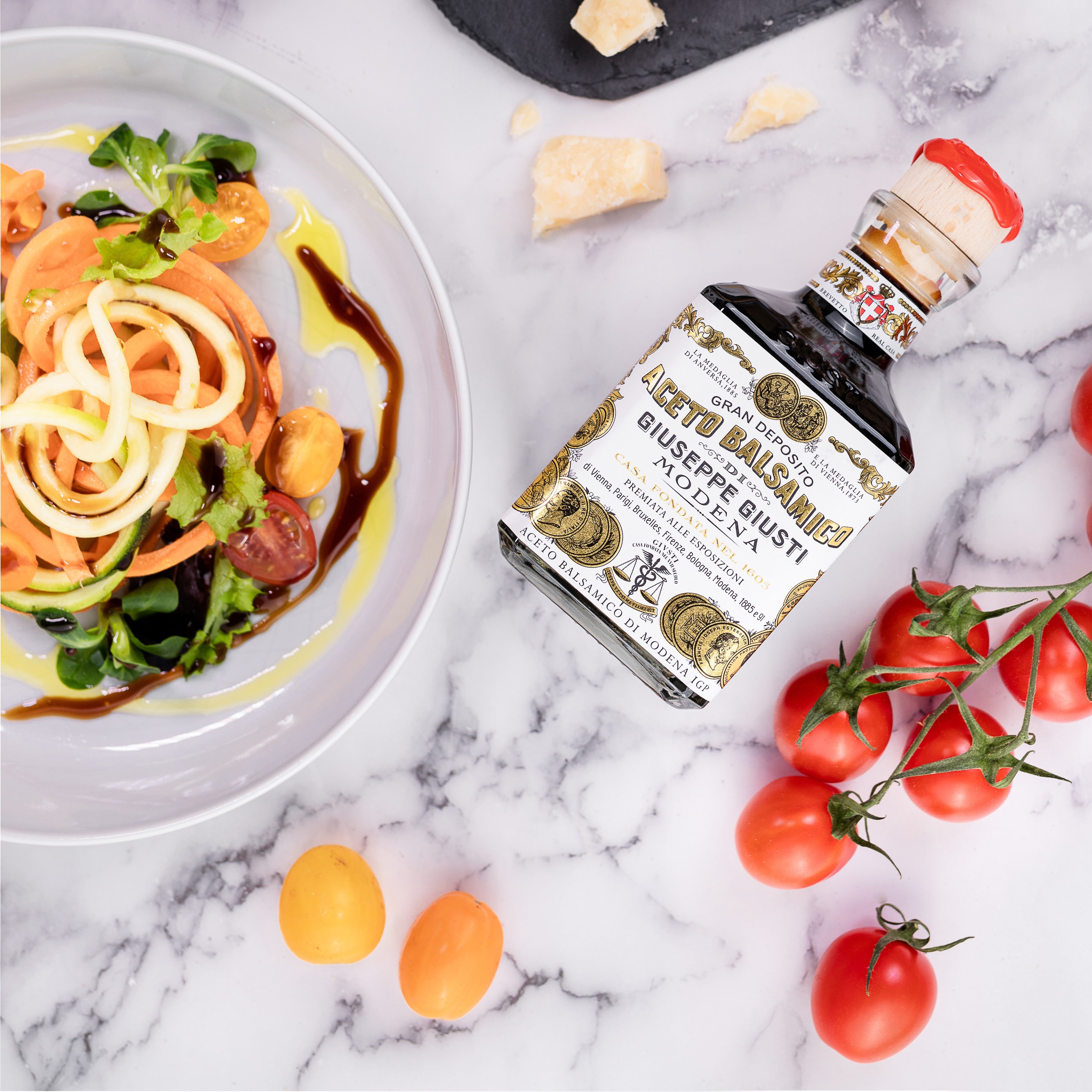 A classic of the Giusti family, the 2 Gold Medals is a versatile product, used fresh or heated in cooking preparations. Of good density and optimal balance between sweet and sour, it's the perfect ingredient to always have in the pantry.