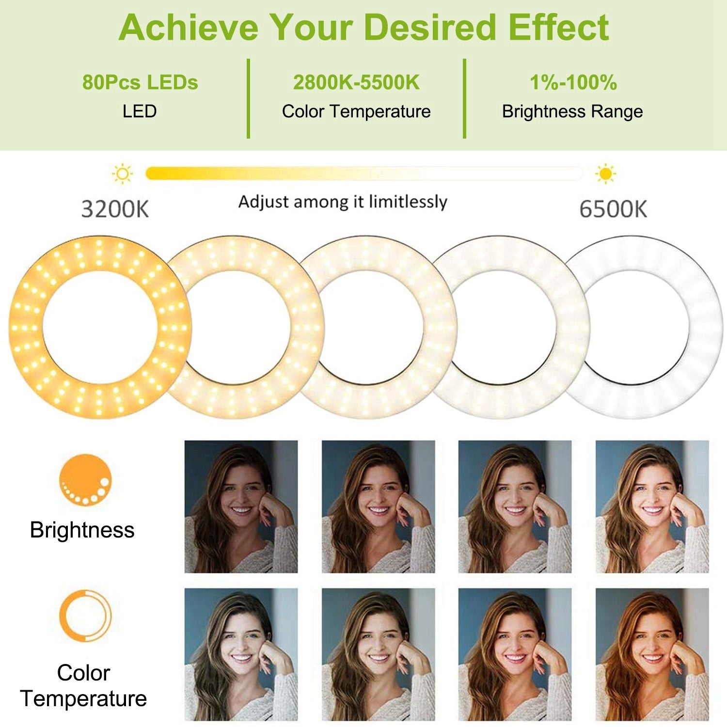 ** *DIMMABLE 80 LED CHIPS*:Adopting 80pcs premium LED chips to provide 4800lumens brightness. And comes with 2 dimmer buttons to adjust the brightness of the light from 1% to 100% and a proper color temperature from 2800K to 5500K simultaneously.