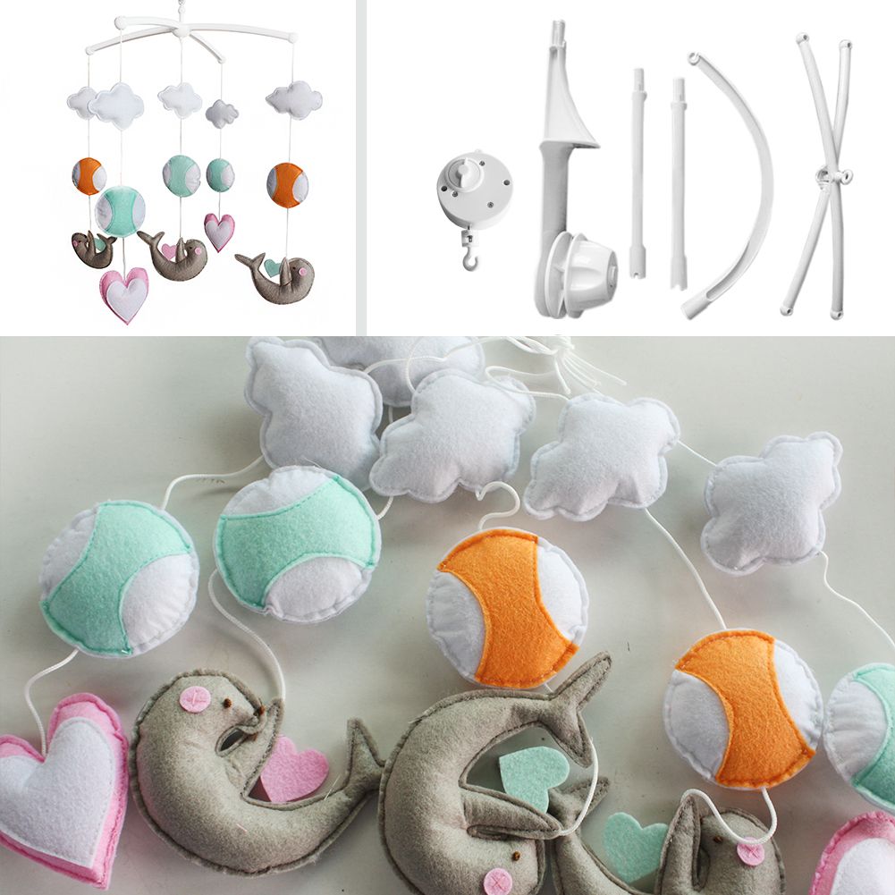 This handmade baby crib mobile plays light music to help your baby easily fall asleep. Easy operation and convenient to use; it will rotate while playing music. Each bed bell plays Only One soothing pure and light song. Keep baby calm and happy. It is an essential product for baby and nursery. Perfect for baby shower or mom-to-be gift for baby's nursery. Baby's nursery room decoration. The toys are made from nonwoven fabric.