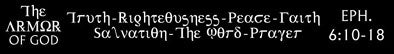 • The armor of God; truth-righteousness-peace-faith-salvation-the Word-prayer – Eph. 6:10-18