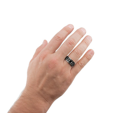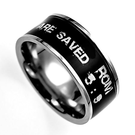 Men's Stainless Steel Ring with high polish trim and comfort fit dome shaped interior. Encased message lists uses transliterated New Testament Greek letters with high light side reference point. Every order comes with complimentary velvet gift bag. Orders ship in 1-2 business days from Phoenix, Arizona.