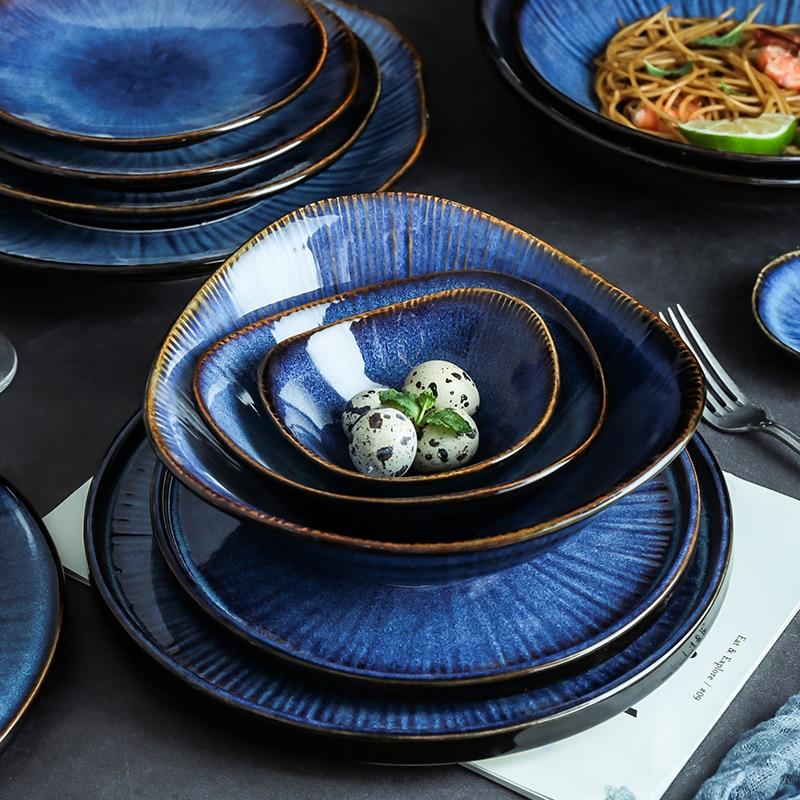 Home And Tower's Diana Bowls were created by talented artisans, these bowls bring a unique, organic, and minimalist masterpiece to your table. Safe for use in the freezer and cleans up easily in the dishwasher after elegant salads or weekday meals. The plates are glazed in modern blue color.