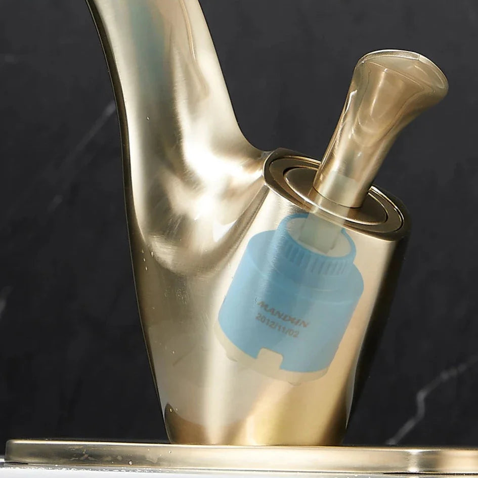 Introducing our Leaf Silhouette Bathroom Sink Faucet: A blend of modern style, robust brass construction, and a nature-inspired design. A single-handle faucet for a sophisticated touch in your bathroom. Comes with a deck plate and pop-up drain.