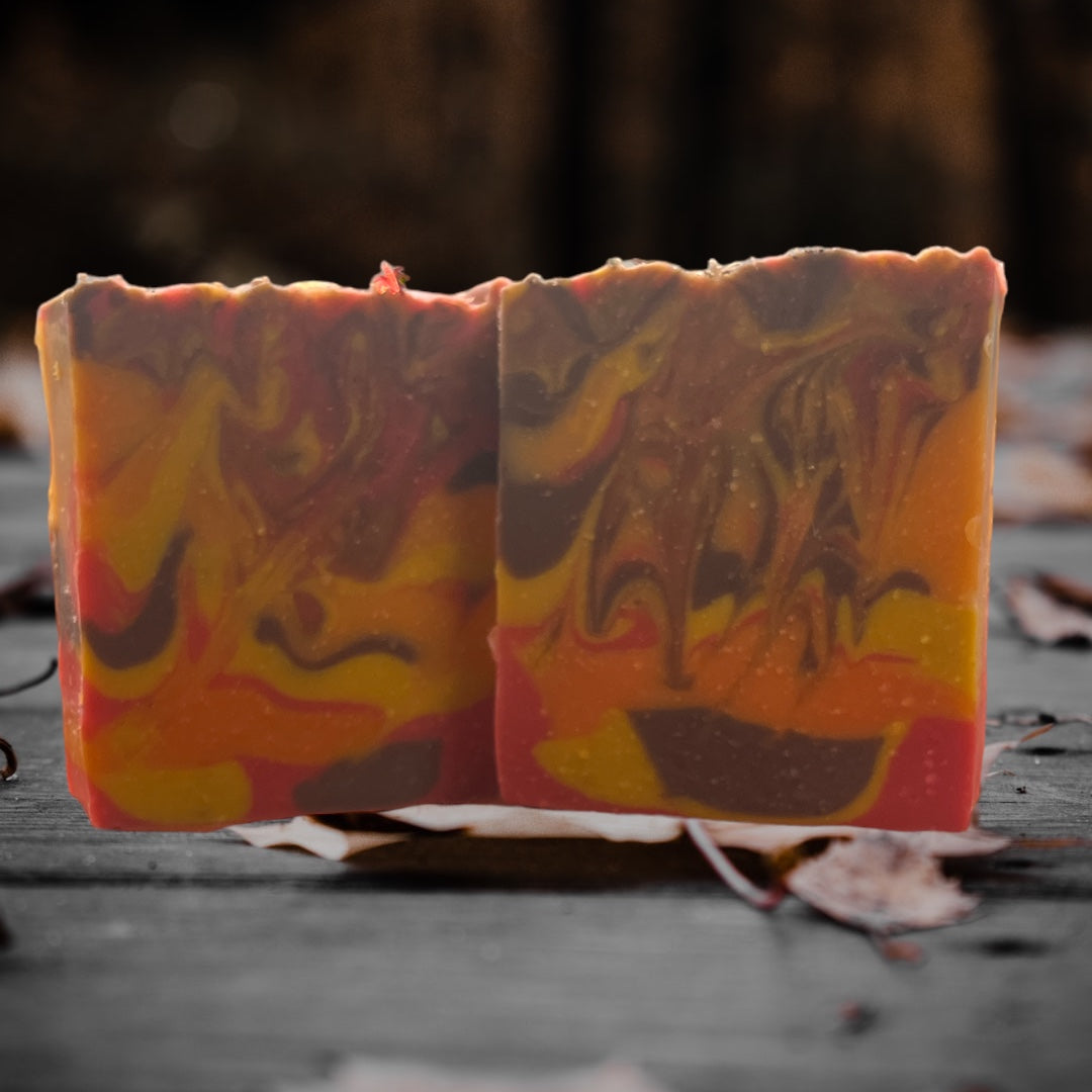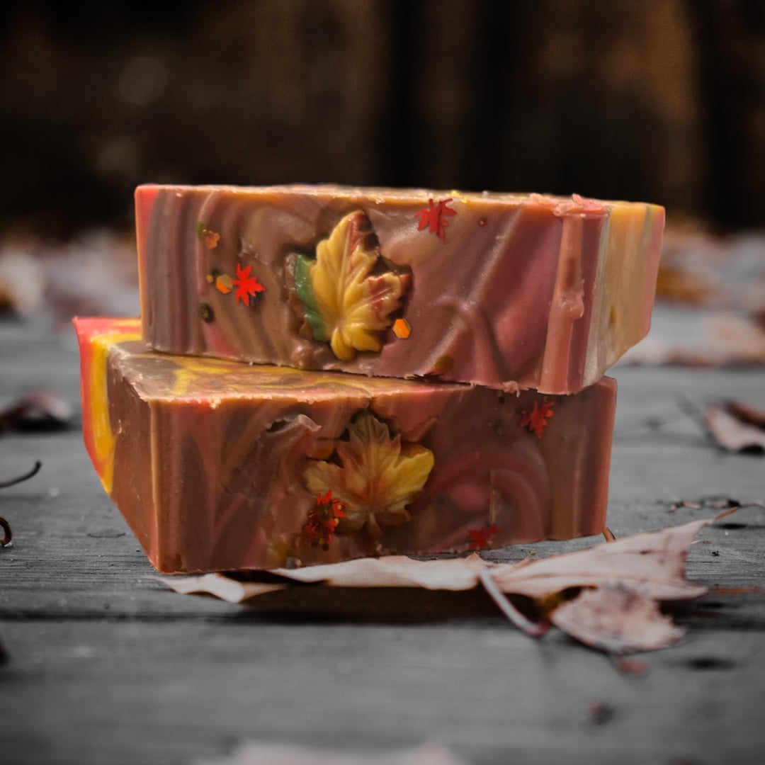 Fall in New England is a special time -- in large part due to Mother Nature's extraordinary artwork she paints as the leaves change their colors.  The smell of this 100% vegan, cold-process soap evokes the sights and smells of a cool, crisp Fall afternoon taking a leisurely drive through the New England countryside leaf-peeping.  Sweet leaf greens, fresh pines, dewy spiced florals, and earthen musk combine with spiced apples to create this scent.