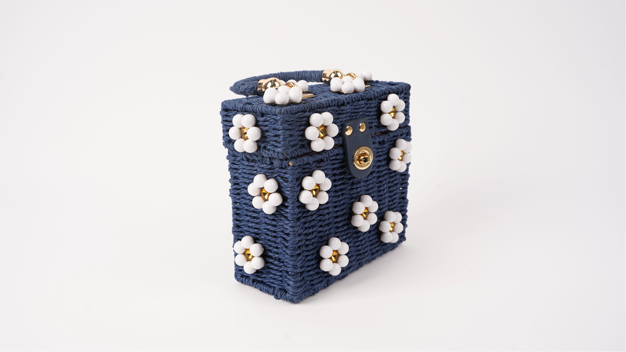 Navy Blue Purse + White Daisy with Yellow Rhinestone Center
