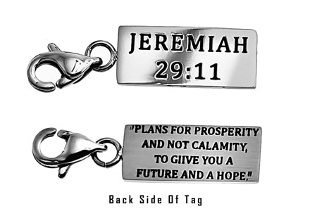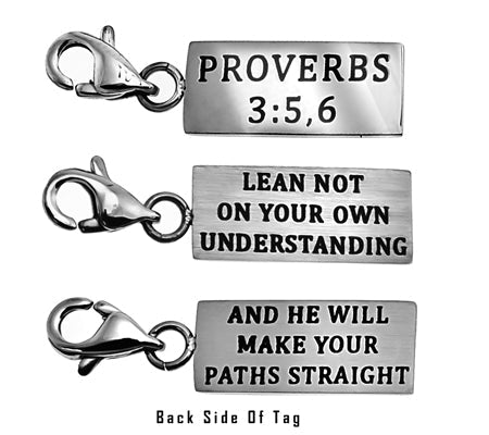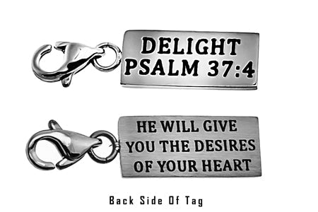 Women's Stainless Steel Necklace with brushed and polished double sided mini charms and CZ Cross pendant. Polished charm reads Scripture of Choice.  Included is 18” stainless steel chain with lobster claw clasp. Charm dimensions are ¾” x ¼”. Every order comes with complimentary velvet gift bag. Orders ship in 1-2 business days from Phoenix, Arizona.