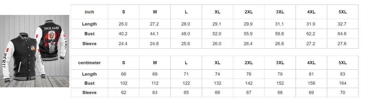 Sizes: S, M, L, XL, 2XL, 3XL, 4XL, 5XL